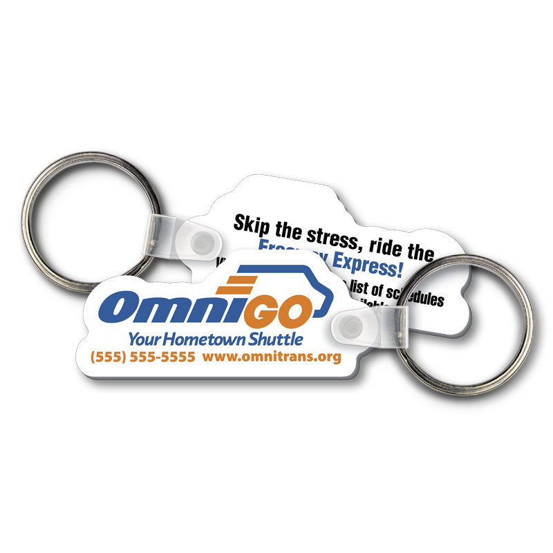 Custom Shape Soft Vinyl Key Tags are available in any shape with no die or setup charges. Comes with Ring and Clasp attached.