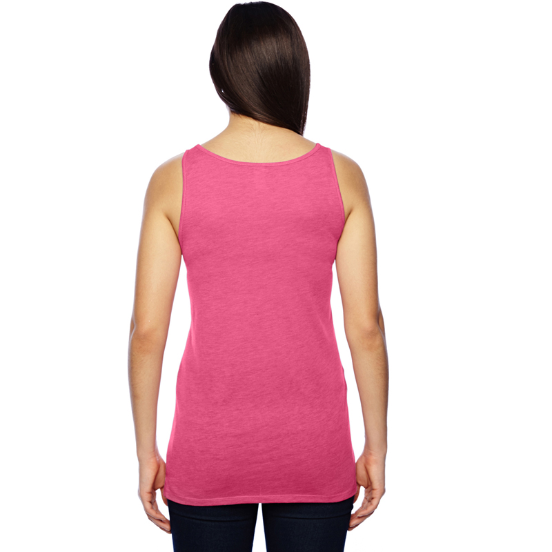 20's Mlange Heather Burnout ; 50% Rayon, 50% Polyester ; 3.1 oz. ; Fiber-dyed, roll print burnout, garment washed; Classic fit ; Self binding around scoop neck and armhole; Side Slit detail, double needle stitching at hem;