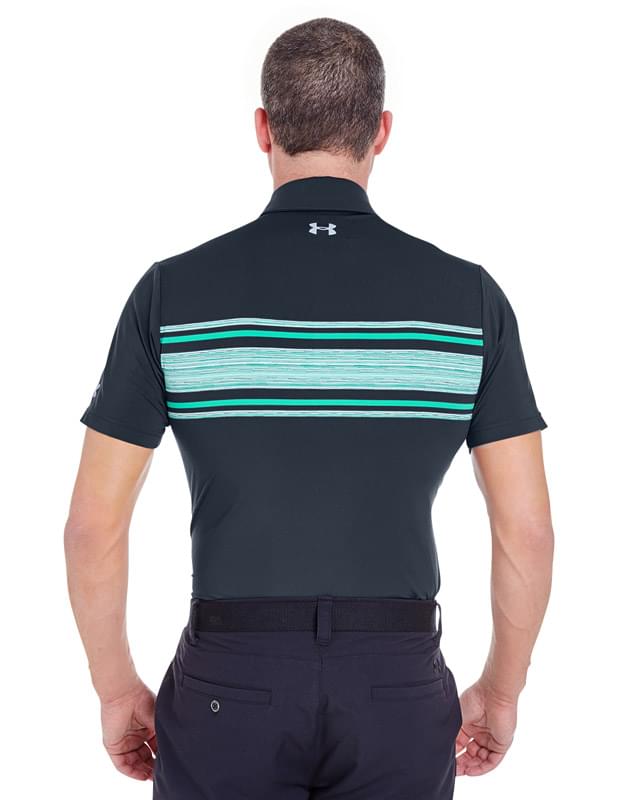88% polyester, 12% elastane ; soft anti-pick, anti-pill fabric has a cleaner, snag-free finish; signature Moisture Transport System wicks sweat and dries fast; anti-odor technology prevents the growth of odor causing microbes; 30+ UPF protects your skin from the sun's harmful rays; four-way stretch fabrication allows greater mobility in any direction; self-fabric collar ; three-button placket; hemmed sleeve; performance loose fit; UA logo on left sleeve and back neck;