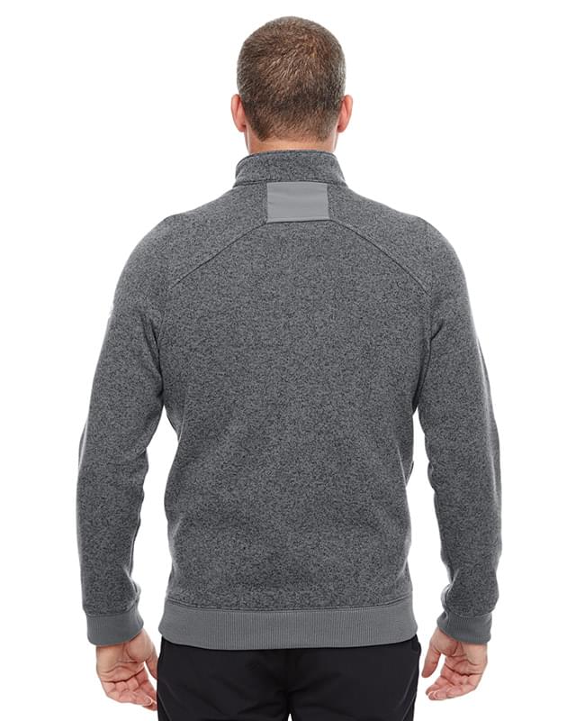 100% polyester; DWR finish to repel water without sacrificing breathability; durable sweater-knit fabric feels soft and comfortable; lightweight woven shoulder and placket overlays for extra protection; signature Moisture Transport System wicks sweat away from the body; rolled forward shoulder seams for unrivaled comfort; open hand pockets; ribbed cuffs and hem; athetic loose fit; UA logo on left bicep;