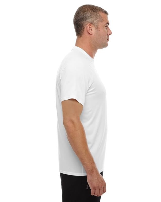 100% polyester; UA tech fabric with an ultra-soft, natural feel for unrivaled comfort; signature Moisture Transport System wicks sweat away from the body; anti-odor technology prevents the growth of odor-causing microbes; raglan sleeve construction and flatlock stitching allow a full range of motion without chafing; athletic loose fit; UA logo on top front chest and back neck (back neck logo is tonal on the white);