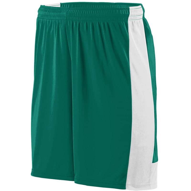 100% polyester wicking knit; Moisture wicking; Pad print label; Covered elastic waistband with inside drawcord; Contrast-color side and bottom back inserts; 8-inch inseam-Youth inseam graded;