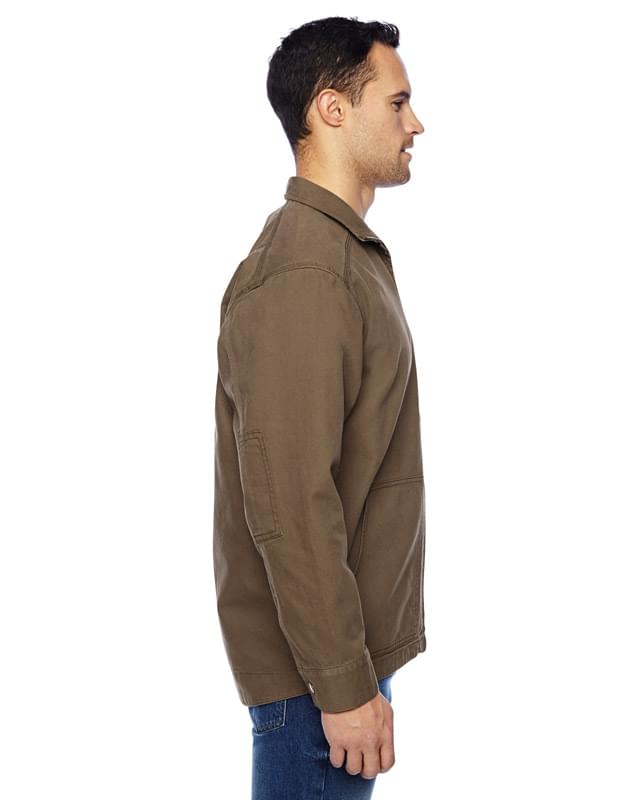 10 oz. 100% cotton Canyon Cloth canvas ; Adjustable snap cuffs ; Inside security pocket ; Triple needle stitching to reinforce high stress seams ; Heavy-duty metal zipper with easy grab puller ;