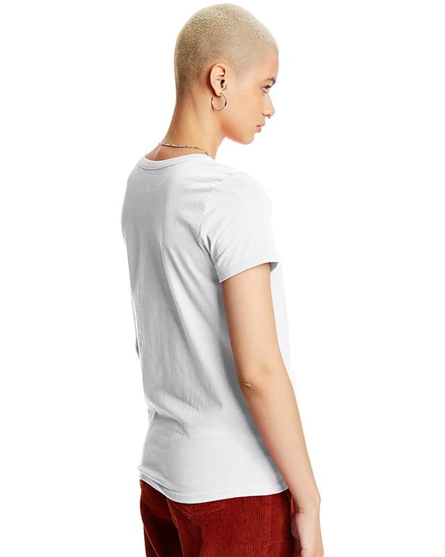 100% ComfortSoft cotton; tailored specifically for women; double-needle stitching throughout ; narrow coverseamed neck with back neck tape; tag-free neck label; Light Steel is 90% cotton, 10% polyester;