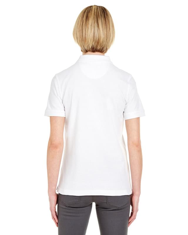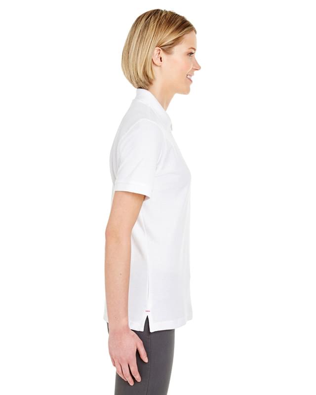 6.5 oz. 65% polyester, 35% cotton piqu; Bio-washed with silicone finish for a soft and luxurious hand; Industrial laundry friendly up to 15 washes; No-fade; No-pill; Shrink- and wrinkle-resistant; Bio-washed with silicone finish for a soft and luxurious hand; Industrial laundry friendly up to 15 washes; Feminine fit; Double-needle stitching throughout;