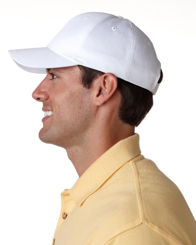 100% washed cotton; Mid-profile; 6-panel; Pre-curved visor; Triple-stitched sweatband; Matching self-adhesive closure; 4"w x 2 1/2"h imprint area;