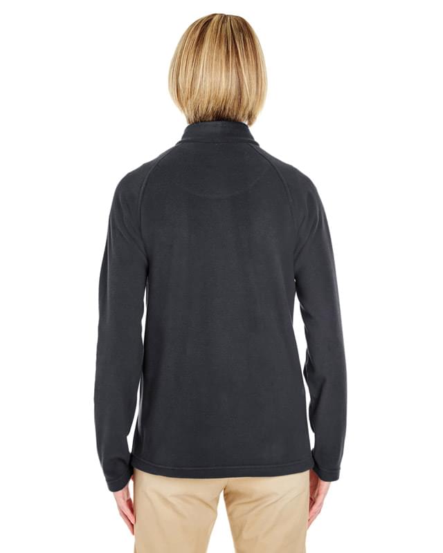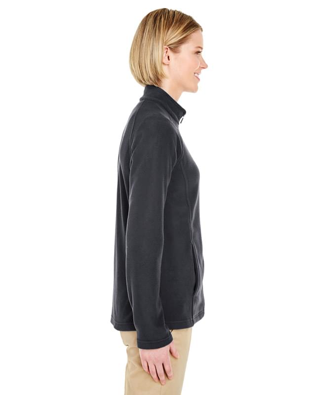 5.6 oz., 100% polyester micro-fleece; Moisture-wicking; UV protection; Feminine fit; Hemmed sleeves; Front pockets; 2 inside pockets;