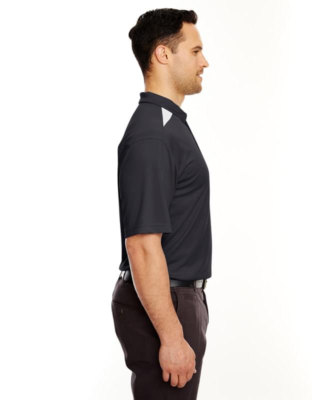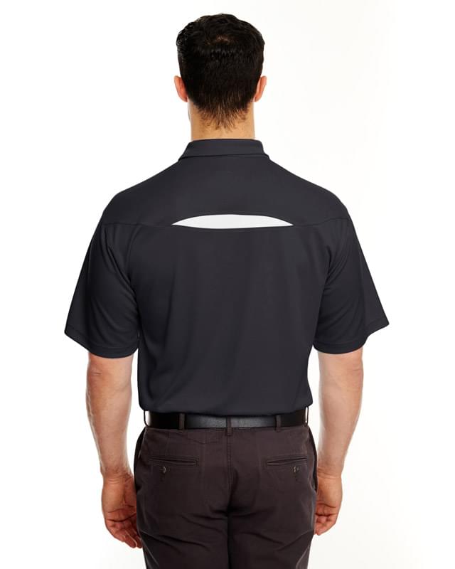 4 oz., 100% polyester mesh; Moisture-wicking; Pill-resistant; UPF 40+ protection; Relaxed fit; Self-fabric collar; 3-button placket; Contrast panels on shoulders sleeves and back; Hemmed sleeves; Tagless;