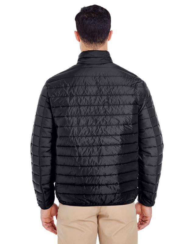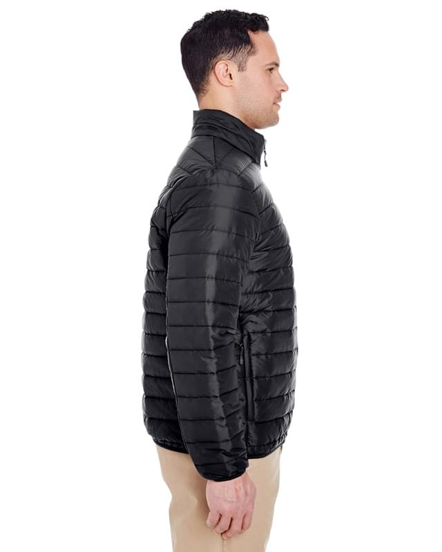 100% nylon taffeta; Water-resistant; Self-fabric stand-up collar; Rib-knit cuffs and waistband; Zippered front pockets; Inside pocket;
