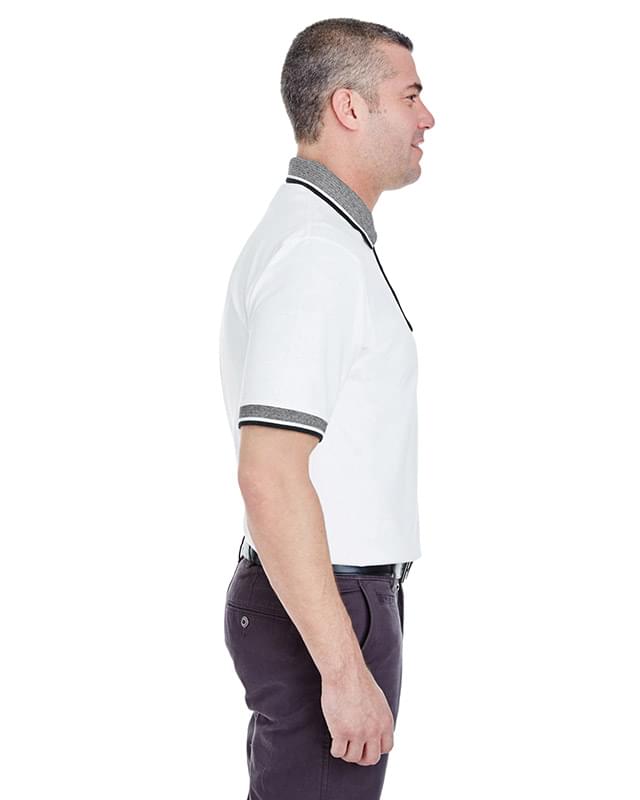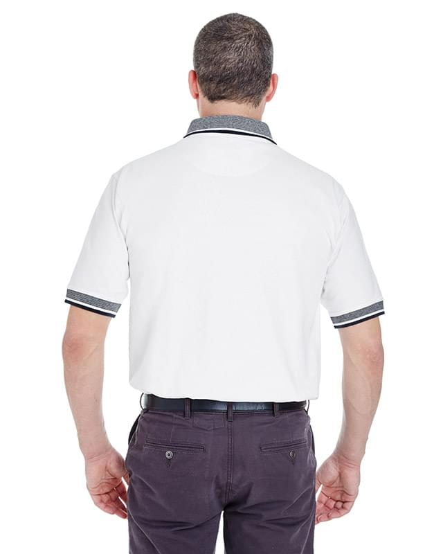 Adult White-Body Classic Piqu Polo with Contrast Multi-Stripe Trim