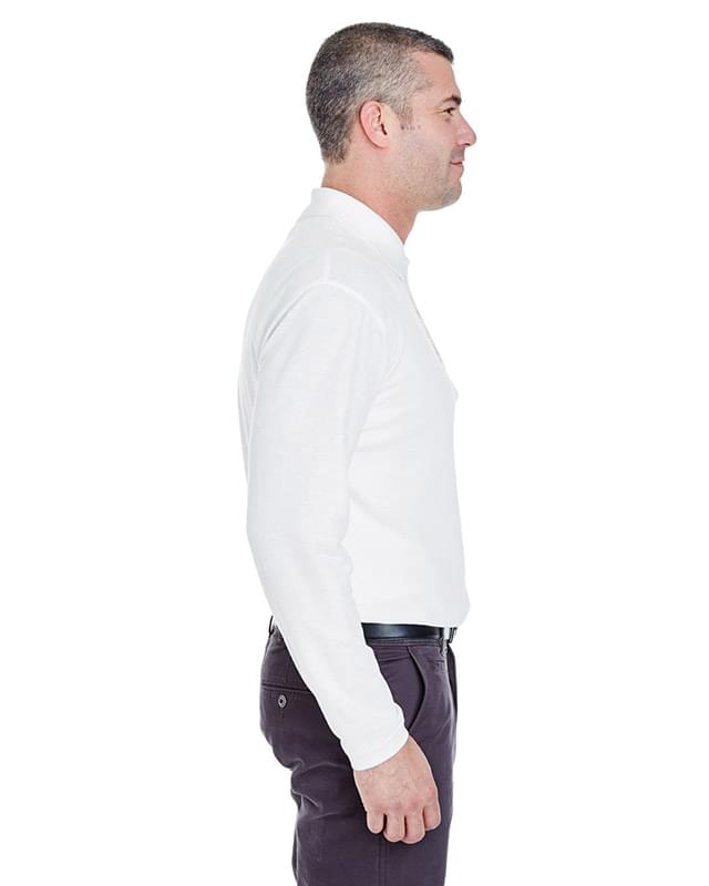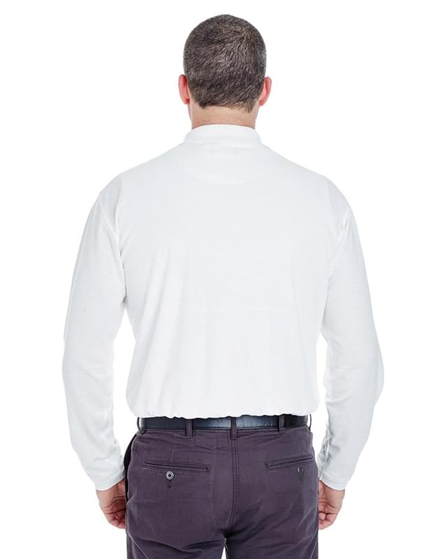 30 singles; 5.6 oz. easy-care 60% cotton, 40% polyester piqu; Relaxed fit; Contoured flat-knit collar and cuffs; Single-needle topstitched neck; Shoulders; Armholes and sleeves; Double-needle half-moon patch and bottom hem;