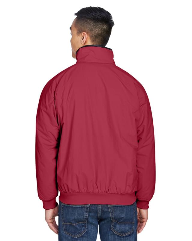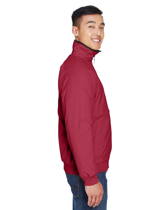 100% taslon nylon shell w/microfleece lining & lightweight polyfill insulation; Nylon-lined sleeves; Sturdy Black enamel front-zipper; InconspicuZip for clean embroidery; Raglan sleeves; Outside zip pockets, inside zip security pocket; YKK zippers; Banded-bottom;