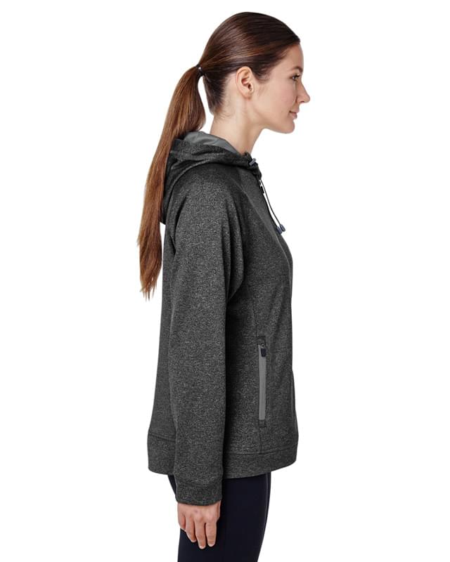 Shell: 7.08 oz/yd2 / 240 gsm, 100% polyester mlange fleece with moisture wicking performance; Lining: 100% polyester tricot in hood; Center front reverse coil zipper with semi-autolock slider and rubber pull; Attached adjustable hood; Lower pockets with reverse coil zippers; Shockcord at hood; Multi-color decorative tape detailing; Contrast coverstitch details throughout;