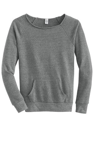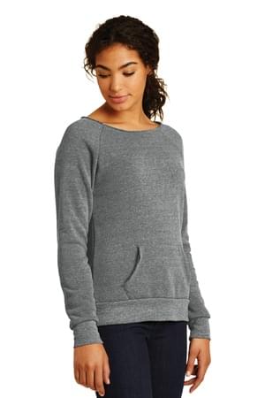 A raw-edge, off-the-shoulder neckline will make you want to dance like you've never danced before. 6.49-ounce, 50/46/4 poly/cotton/rayon 50% polyester(6.25% recycled), 46% cotton(6.25% organic), 4% rayon Slim fit Raw neckline Raglan sleeves Kangaroo pocket Ribbed sleeve cuffs and hem Eco-Fleece fabric infuses each garment with unique character. Please allow for slight color variations. Alternative Apparel reserves the right to prohibit the addition to any Alternative Apparel product any mark, name, design or logo that does not meet the high standards of the brand. Please contact your sales representative with questions. These products may not be resold without embellishment.
